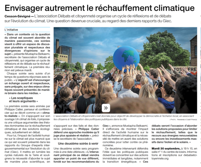 Première Conférence : Animée par un conférencier sceptique, cette session mettra en avant des critiques sur les causes du réchauffement climatique ainsi que sur les solutions proposées, souvent jugées coûteuses par rapport aux résultats attendus. Il abordera également l'impact sociologique de la peur suscitée par la couverture médiatique de ce sujet. (documents préparatoires)